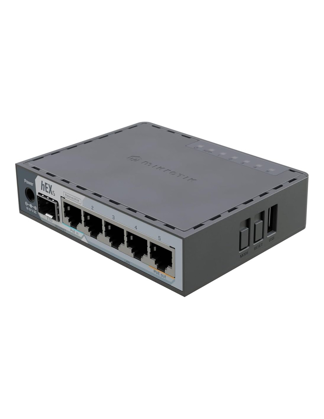 MikroTik hEX S (2025) – routeur filaire compact avec 5 ports Gigabit Ethernet, 1 port SFP 2,5 G, PoE‑in & PoE‑out, USB 3.0 et système RouterOS v7