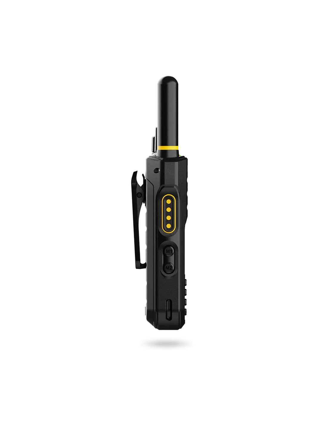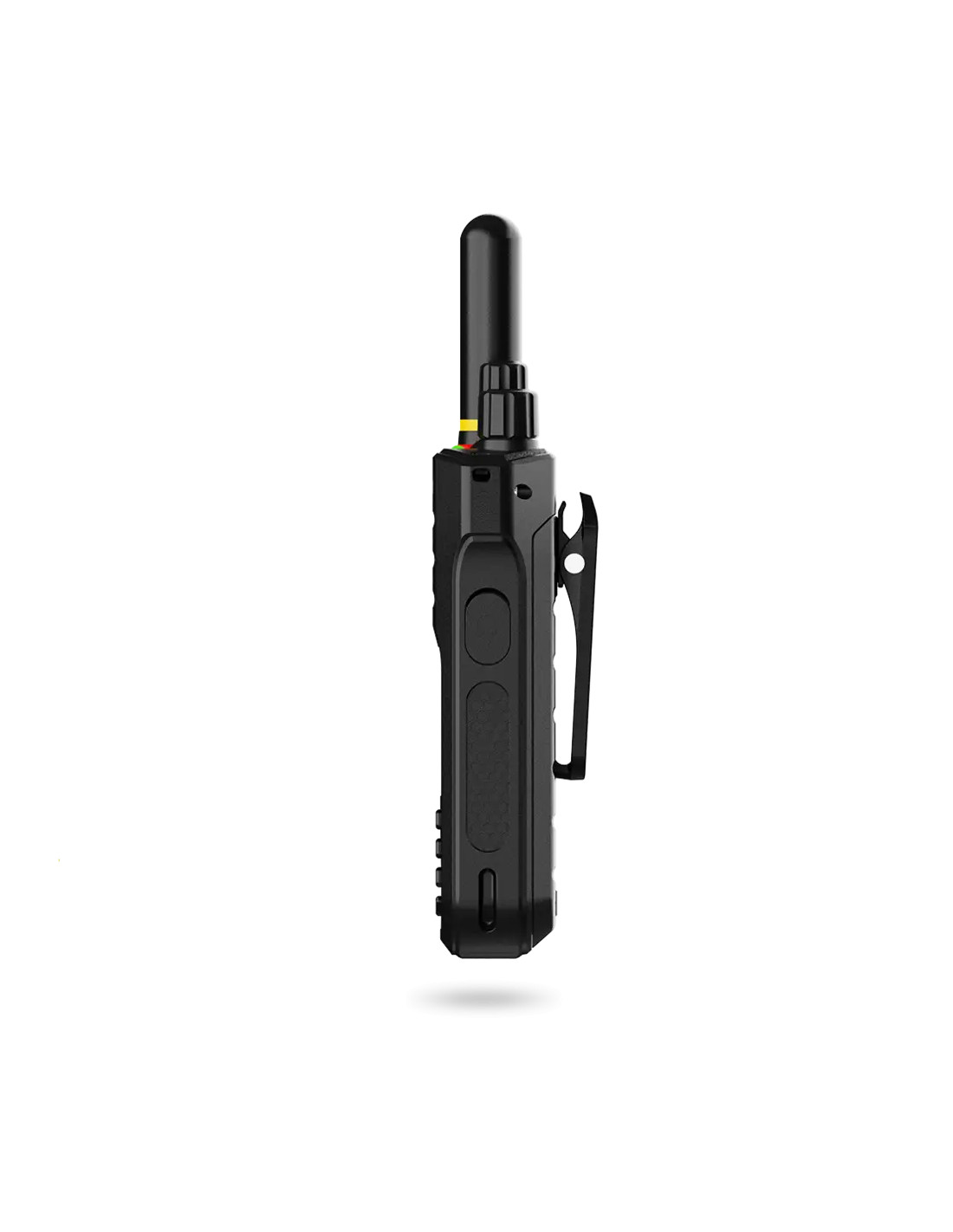 Radio 4G robuste avec fonction Push‑to‑Talk, haut‑parleur 2 W, batterie amovible 3000 mAh, réduction de bruit IA.
